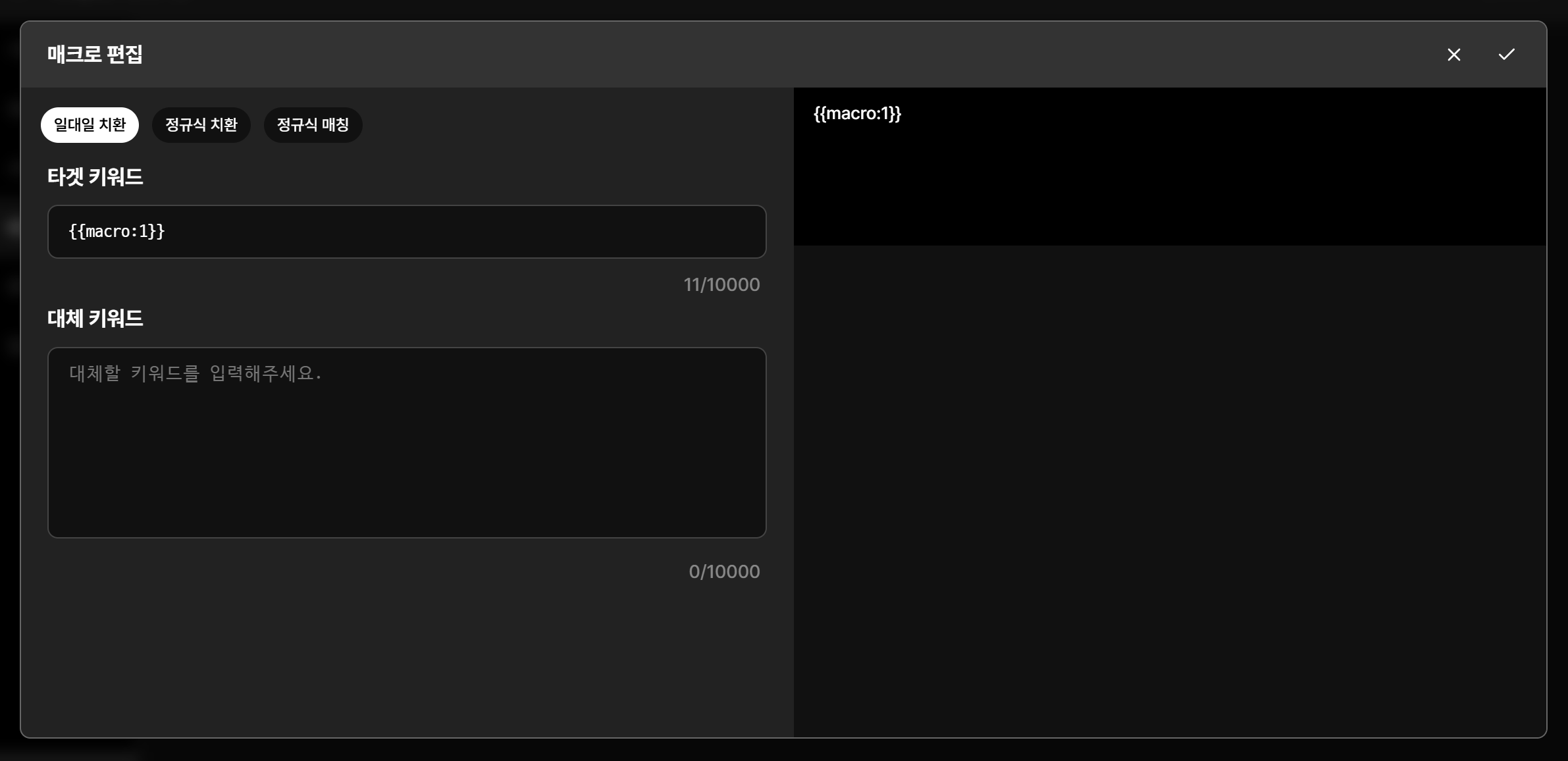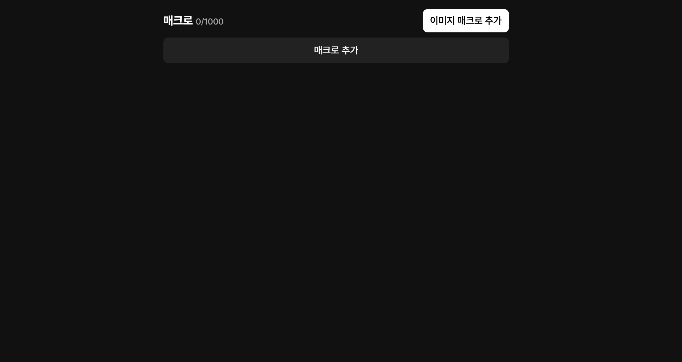 매크로 추가 버튼을 눌러 생성할 수 있습니다. 최대 1000개까지 생성 가능합니다.